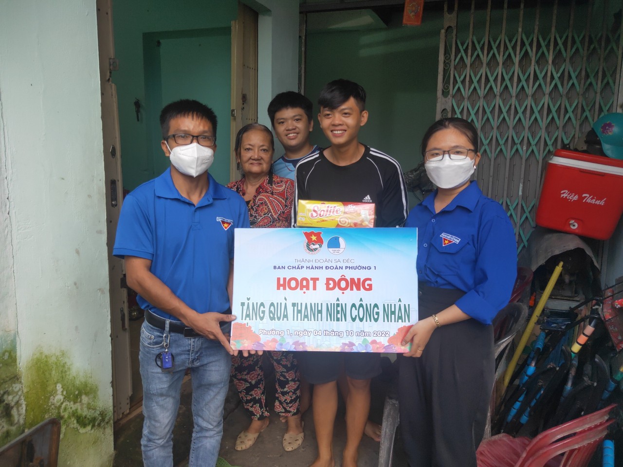 Chiều ngày 04 tháng 10 năm 2022, Đoàn cơ sở BVĐK Sa Đéc phối hợp cùng Đoàn thanh niên phường 1 tổ chức thăm, tặng quà cho thanh niên công nhân có hoàn cảnh khó khăn trên địa bàn Phường 1