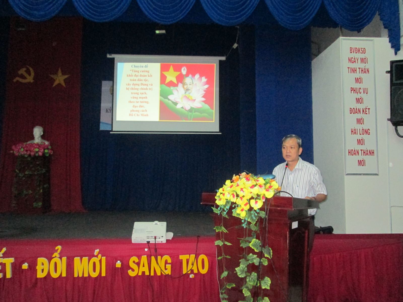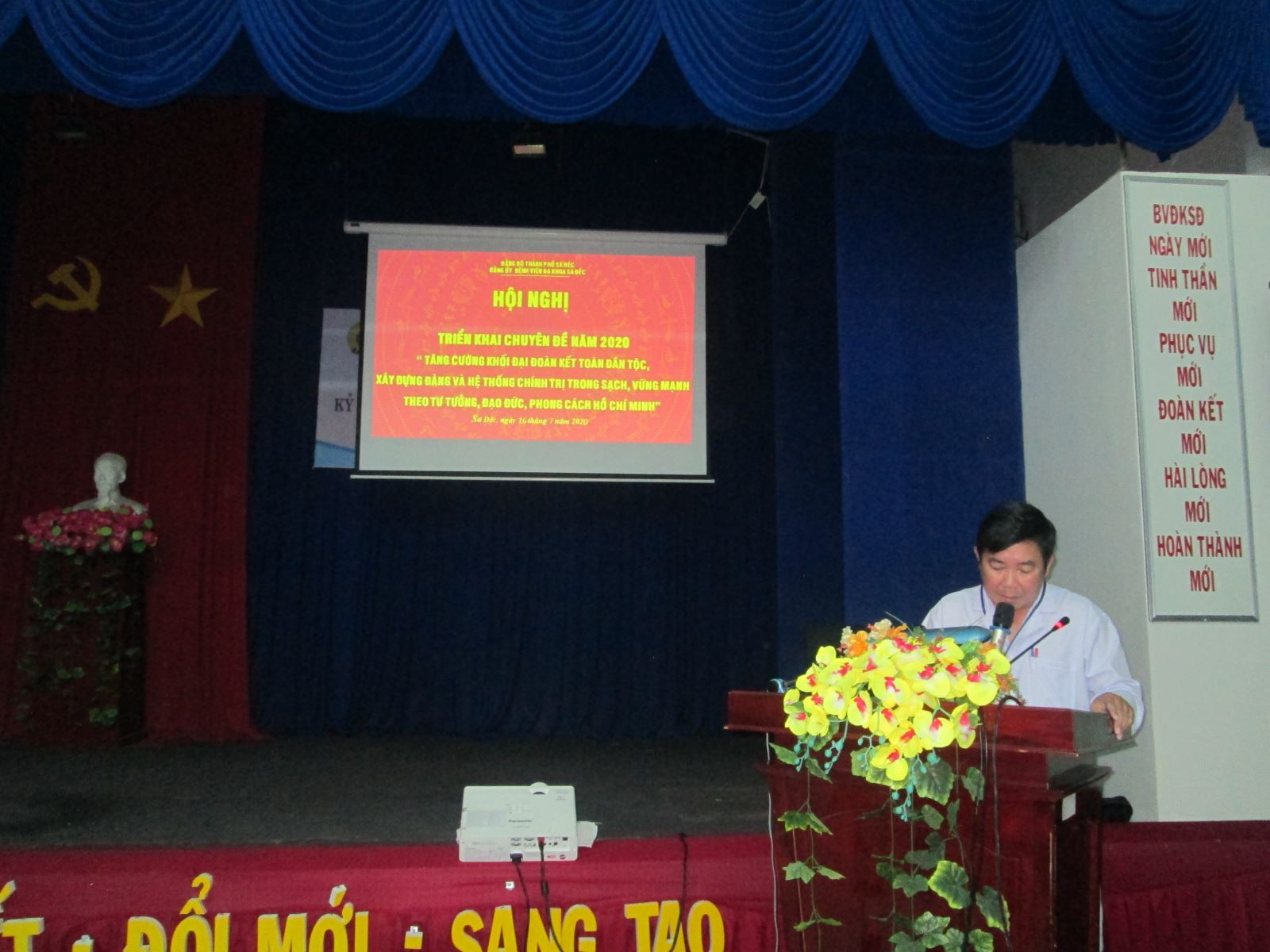 Hội nghị đã nghe đồng chí Lý Thanh Vân - Ủy viên Ban Thường vụ, Trưởng Ban Tuyên giáo Thành ủy Sa Đéc, Giám đốc Trung tâm Bồi dưỡng chính trị TP.Sa Đéc báo cáo các nội dung chuyên đề năm 2020 về ‘Tăng cường khối đại đoàn kết toàn dân tộc, xây dựng Đảng và hệ thống chính trị trong sạch, vững mạnh theo tư tưởng, đạo đức, phong cách Hồ Chí Minh”: Phát huy sức mạnh đại đoàn kết toàn dân tộc trong trong sự nghiệp xây dựng và bảo vệ tổ quốc, gắn với thực hiện nhiệm vụ chính trị là chăm sóc sức khỏe cho người dân tại BVĐK Sa Đéc; Vận dụng nội dung mang tính chiến lược trong tư tưởng, đạo đức, phong cách Hồ Chí Minh là xây dựng Đảng và hệ thống chính trị tại đơn vị trong sạch, vững mạnh.
