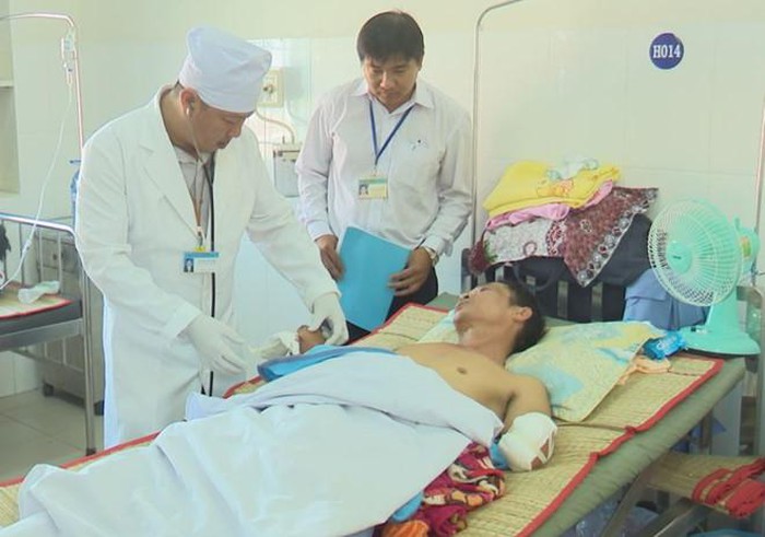 Theo bác sĩ Tuấn, do ông Bảy bị choáng, mất nhiều máu, 2 bàn tay dập nát nên bệnh viện phải huy động 2 ê kíp y, bác sĩ để cấp cứu và phẫu thuật cho bệnh nhân.