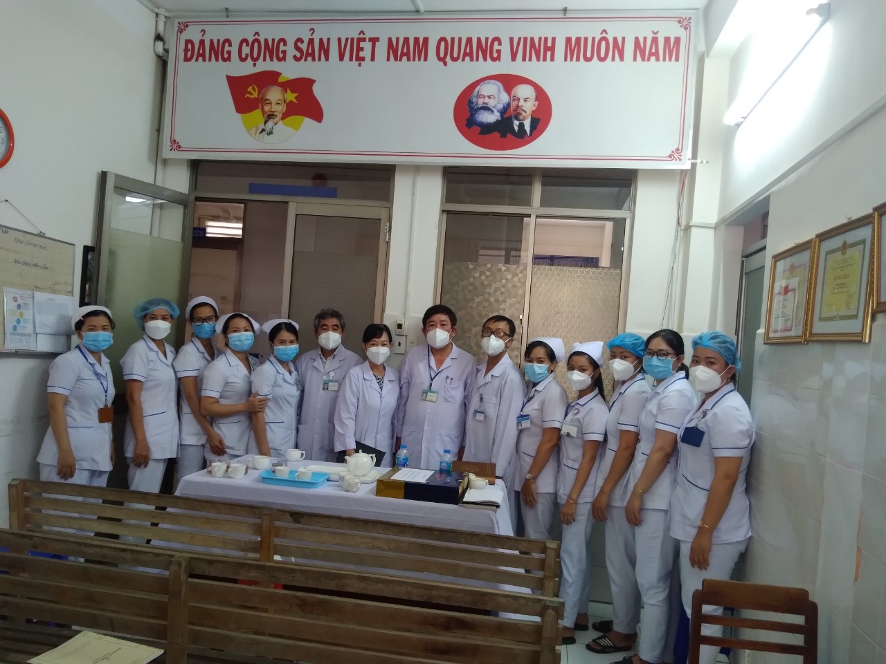 Cùng tham dự với Đoàn có đại diện Đảng ủy, Ban Giám đốc Bệnh viện, Ban chấp hành Công đoàn, Đoàn thanh niên, Phòng điều dưỡng đến họp mặt cùng Lãnh đạo và điều dưỡng khoa nhằm tôn vinh hình ảnh cao đẹp người điều dưỡng, đồng thời ghi nhận những đóng góp, cống hiến và sự hy sinh thầm lặng của điều dưỡng đối với người bệnh; đặc biệt là trong những đợt dịch Covid 19 bùng phát, qua đó nắm bắt được tâm tư nguyện vọng, chia sẻ khó khăn của điều dưỡng để có hướng hỗ trợ tốt nhất trong thời gian sắp tới.