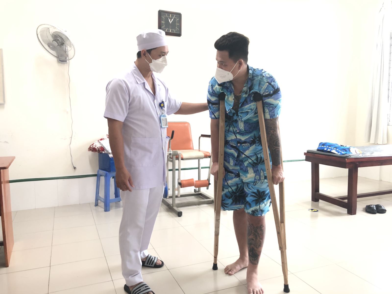 Kỹ thuật viên VLTL - PHCN hướng dẫn người bệnh đi nạn: Ảnh - Tổ viết tin bài
