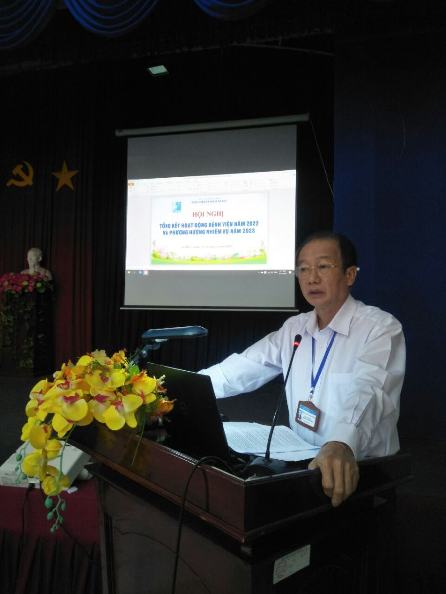 Ngày 15/12/2022, Bệnh viện Đa khoa Sa Đéc đã tổ chức Hội nghị tổng kết năm 2022 và phương hướng hoạt năm 2023, BSCKII Trần Thanh Tùng, Giám đốc bệnh viện, chủ trì Hội nghị cùng với sự tham gia của Bs CKI Hồ Thái Giang Thanh - Phó Trưởng Phòng, Phòng Nghiệp Vụ Y - Sở Y tế, đại diện Đảng ủy, Đoàn thể, Trưởng Khoa, Phòng và 10% viên chức bệnh viện.